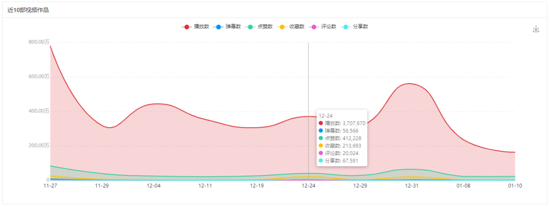 如果近10部作品数据趋势图无大波谷,在一个高位数值波动,基本可判断曝光量是可以确保。