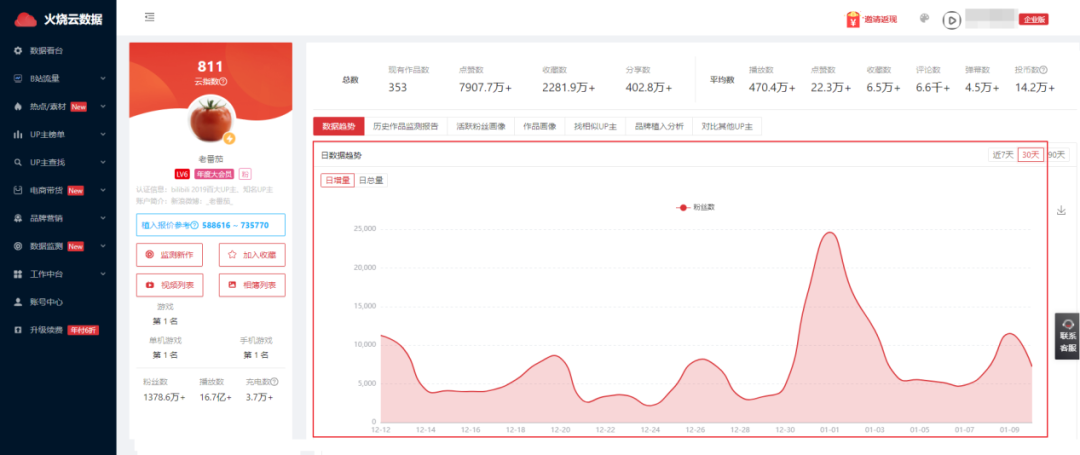 如果日涨粉数据趋势稳定,且呈现上升趋势,说明UP主的吸粉力很好,三连数据不会差。