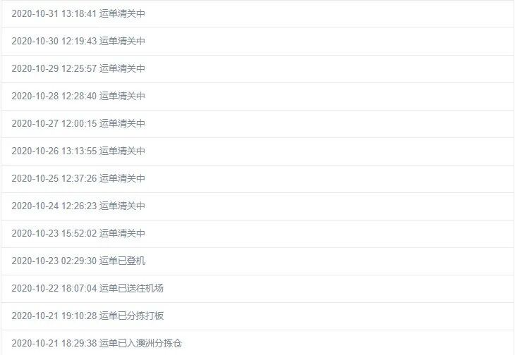 如若大家都规范填写自己的信息并及时上传身份证,我们的物流很快会送到您的手中,下图是我们正常的物流速度,可以给大家做出一个很好的示例,仅用了十天的时间,我们的快递从悉尼送至了客户手中。