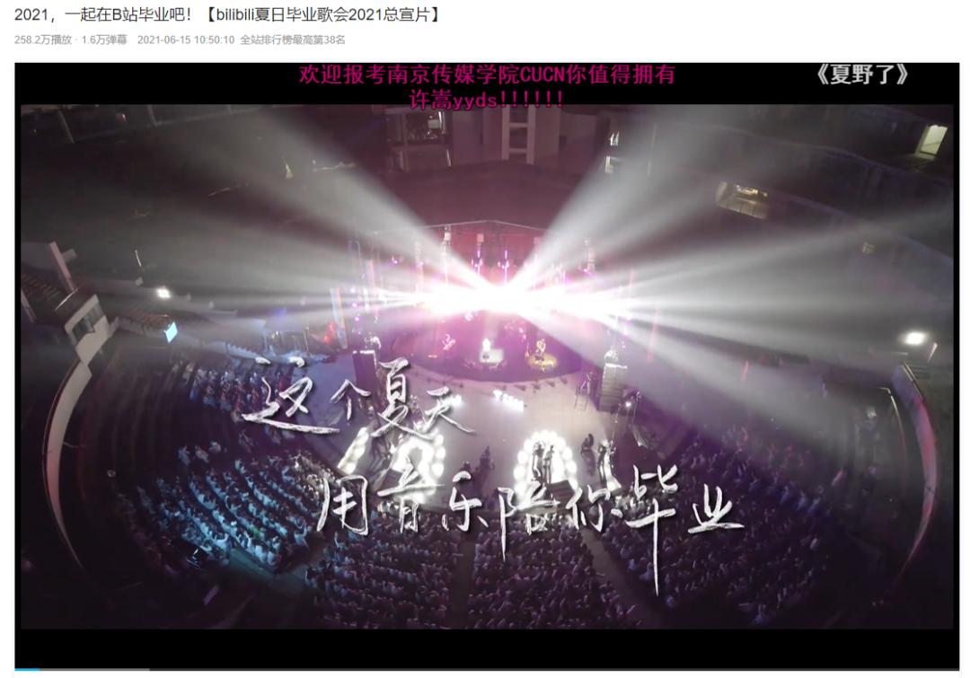 6月15日,B站开启了毕业歌会预热,其预告总宣片引起了大波热度,B站播放量达250万+。