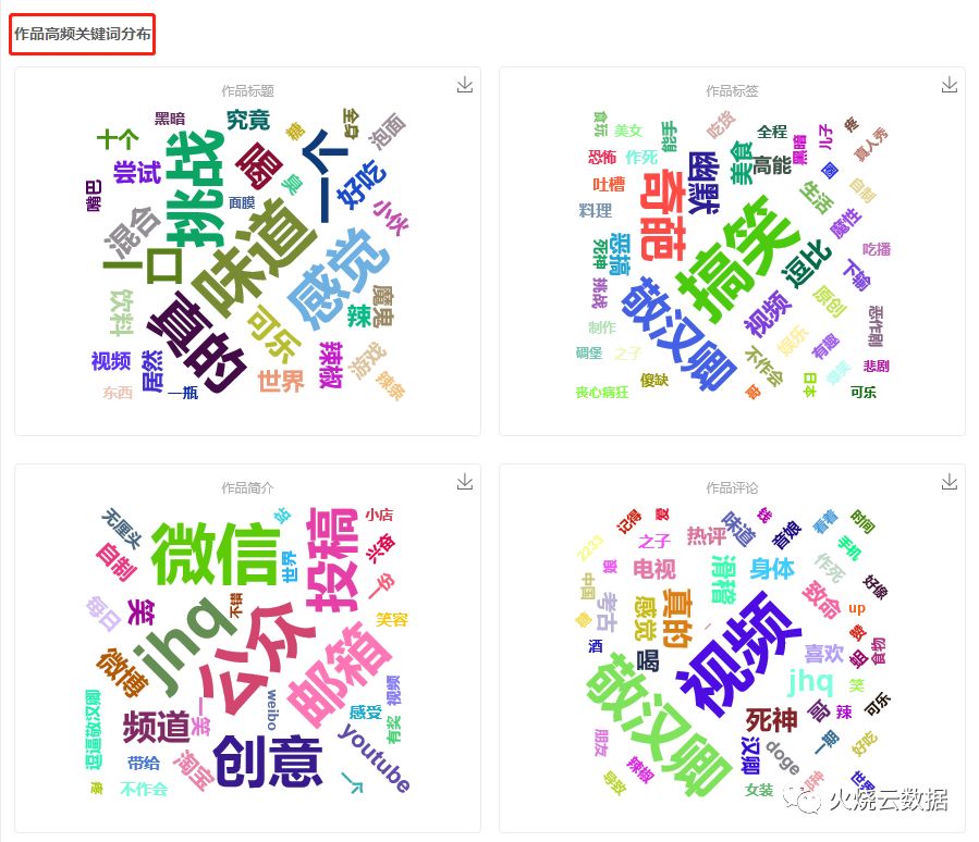 分布能看出up主的词汇使用习惯,还能推测出up主的风格,比如搞笑、逗比的词汇频繁出现,up主作品风格可能走幽默为主。
