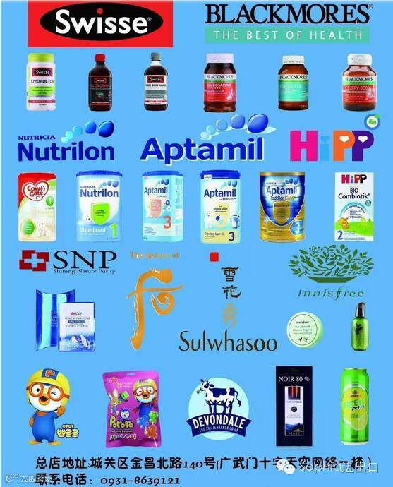 澳洲保健品,日韩的化妆品。还有进口母婴用品:德国爱他美,英国爱他美,澳洲爱他美,英国牛栏,荷兰牛栏,荷兰本土美素佳,德国有机喜宝,德国益生菌喜宝,花王纸尿裤,尤妮佳纸尿裤等等。
