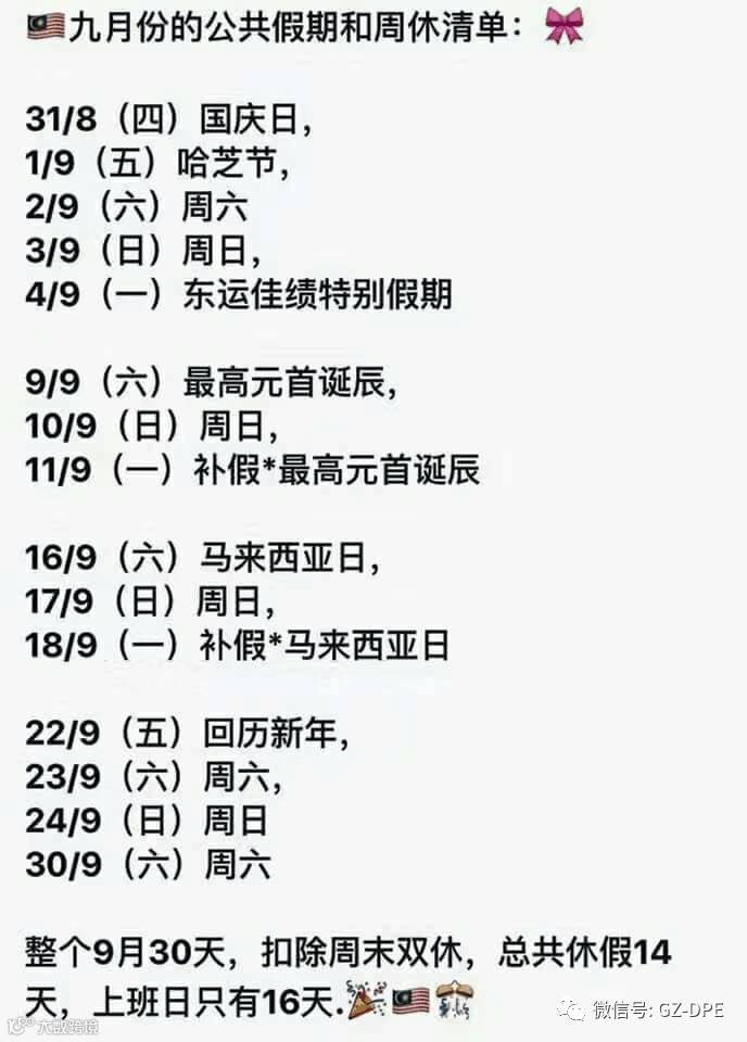 据说还没完,以下是大马9月份的假期清单,你们自行感受下