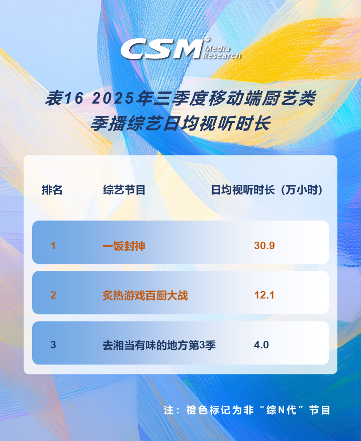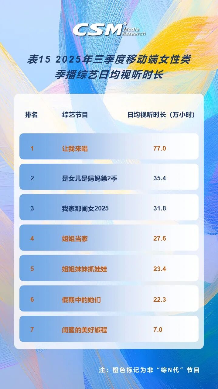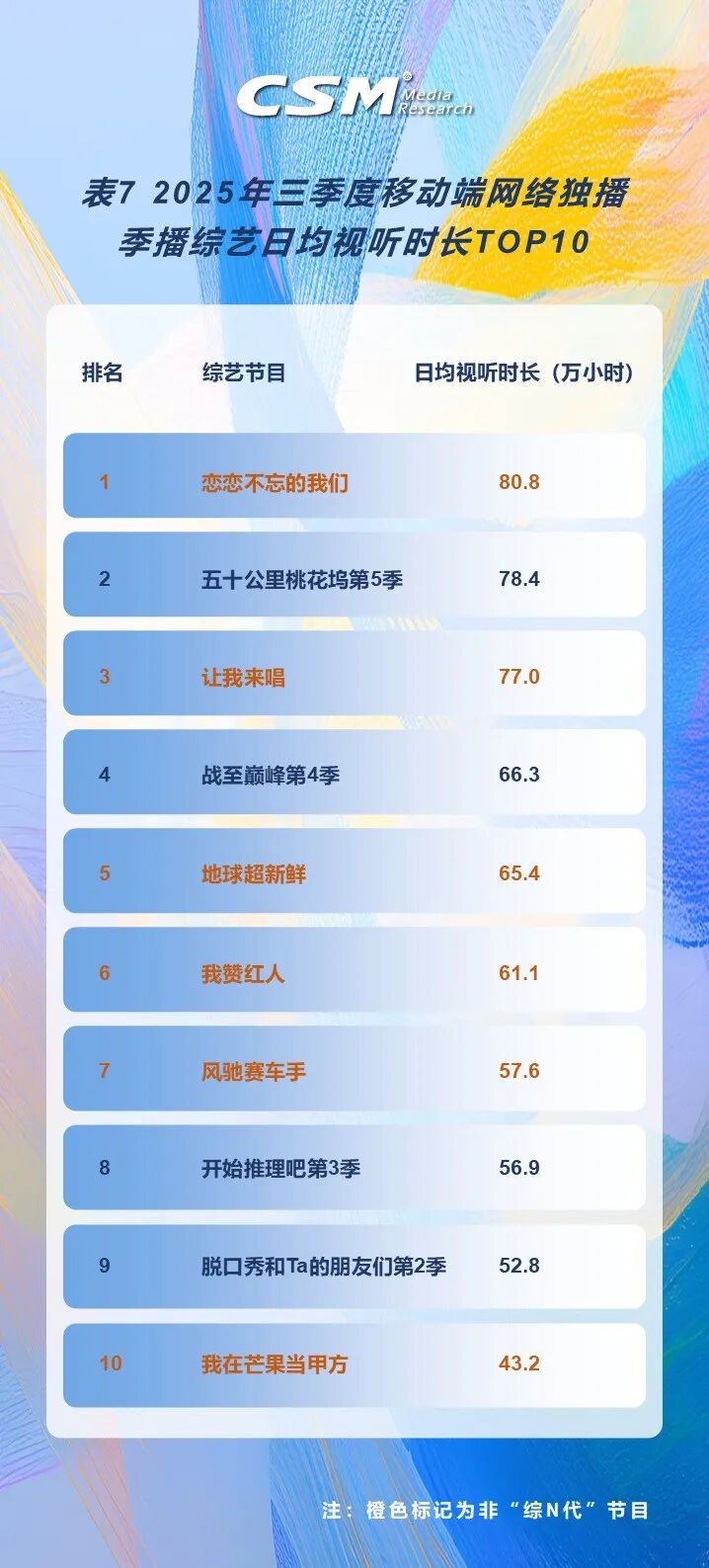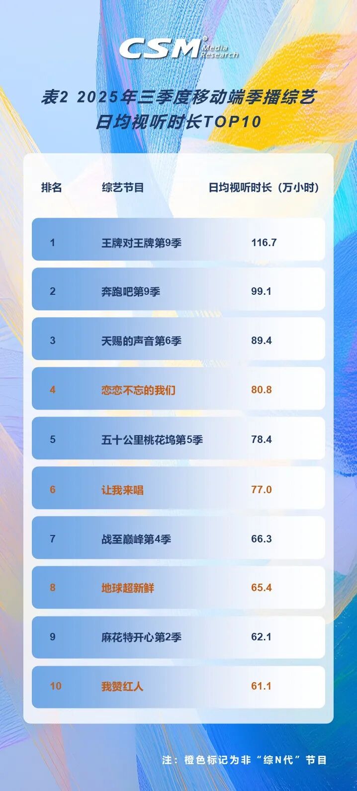 “综N代”稳坐榜首,非“综 N 代”锋芒显现