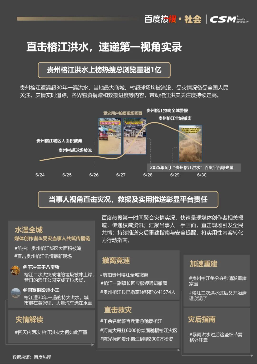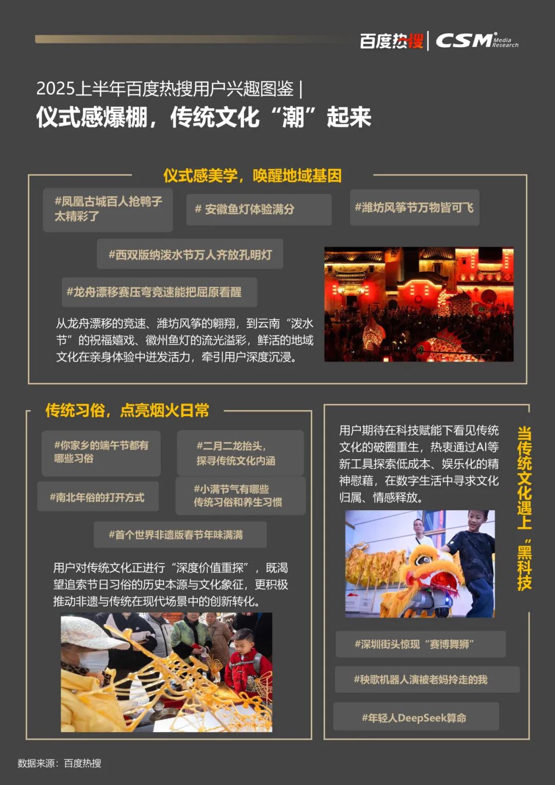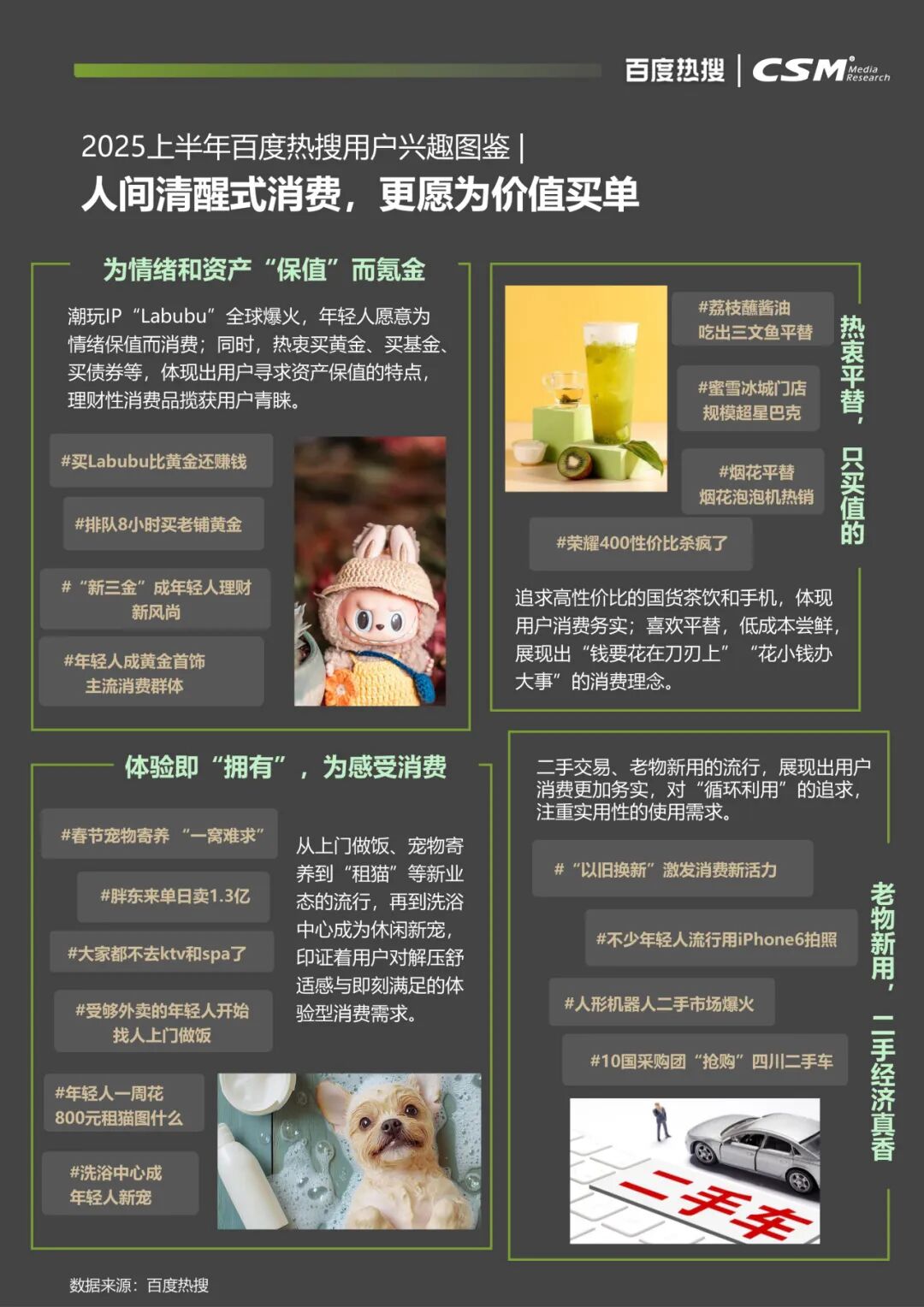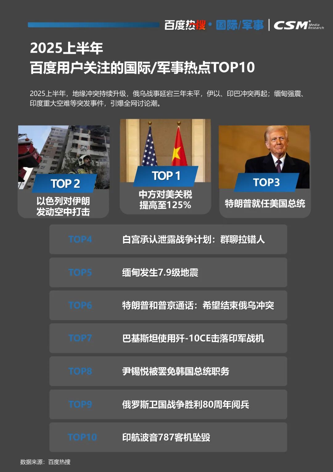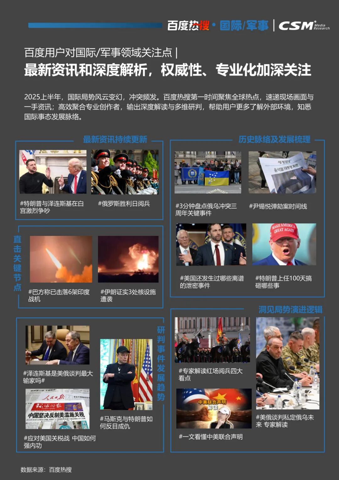 百度热搜与中国广视索福瑞媒介研究(CSM)联合发布《2025百度热搜年中报告》,基于海量热点数据与深度洞察,全景扫描上半年国民关注焦点。报告显示,2025上半年,百度热搜作为洞悉公众注意力流向与社会情绪变迁的"晴雨表",累计汇聚5.5万个热点议题,吸引逾1.7亿用户驻足追踪。