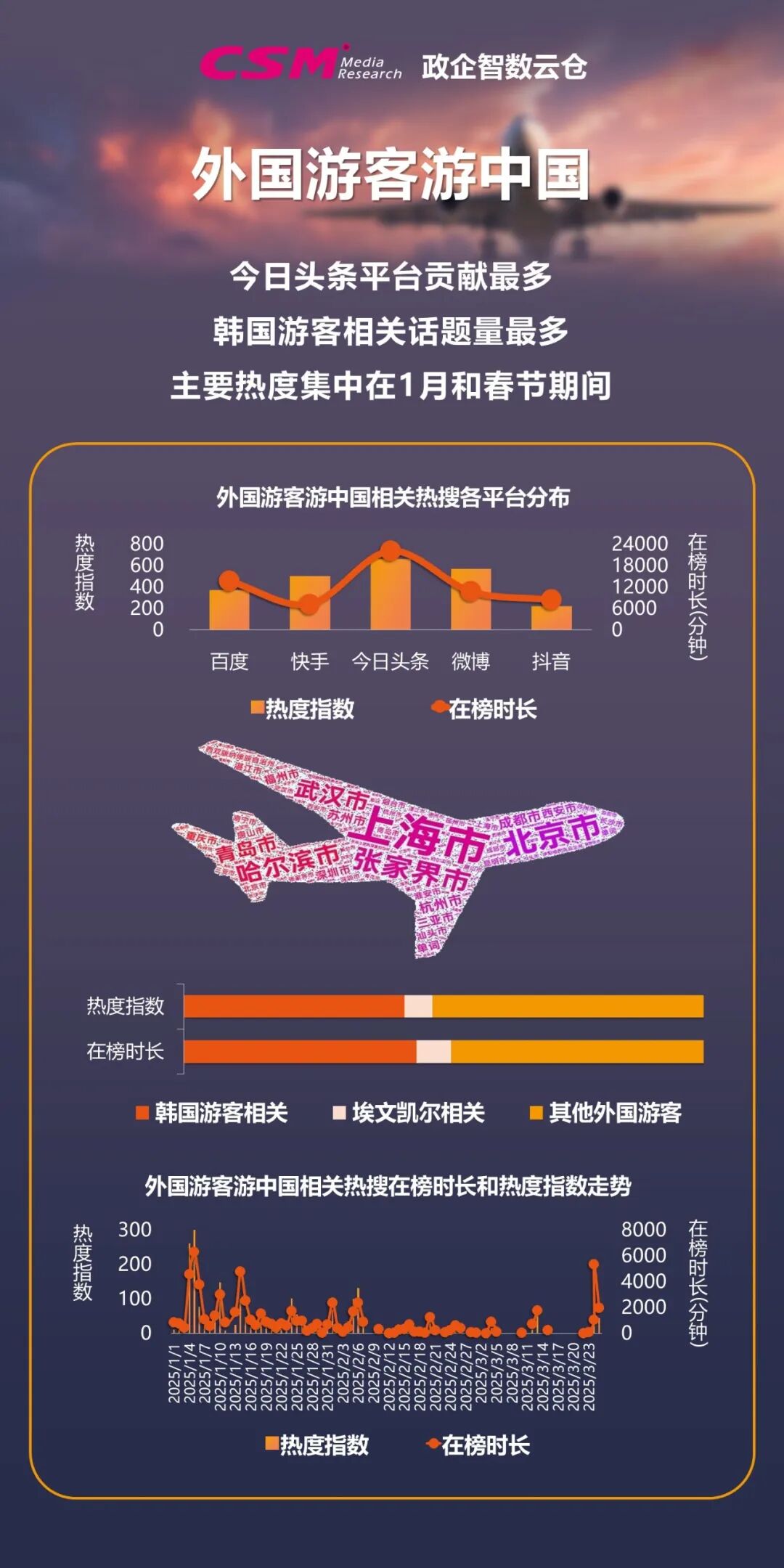 “外国游客游中国”:甲亢哥、韩国游客和埃文凯尔相关话题带动热度飙升