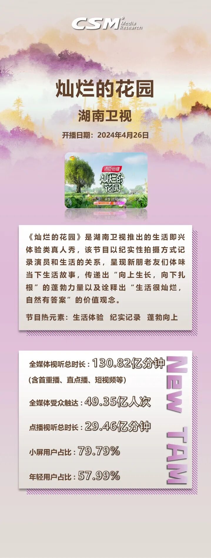 注重生活细节与体验,通过各种形式展现平凡生活中的美好与乐趣,涵盖亲子互动、健康养生、自然园艺等多个方面,让观众在轻松愉悦的氛围中感受到生活的丰富多样。《灿烂的花园》像在田园课堂中学习如何打造属于自己的花园,沉浸于自然美好中,享受生活的诗意。《小小骑士一起冲》则以亲子合作的骑士挑战为亮点,增进家庭情感。