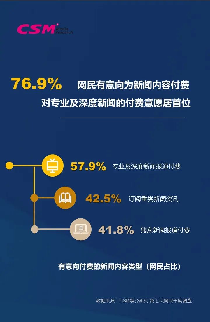 76.9%的网民有意向为新闻内容付费,年轻用户意愿更高