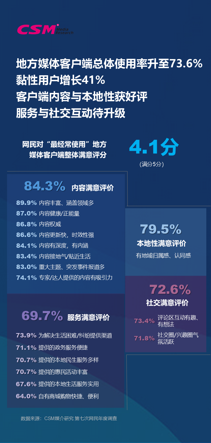 地方媒体客户端总体使用率升至73.6%,黏性用户增长41%