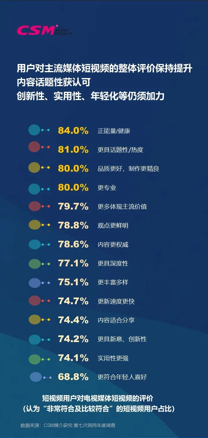在网络信息多元化的背景下,网民对主流媒体短视频的内容评价保持提升。依托短视频、网络直播等传播形式,主流媒体有效提升了网络传播的影响力。