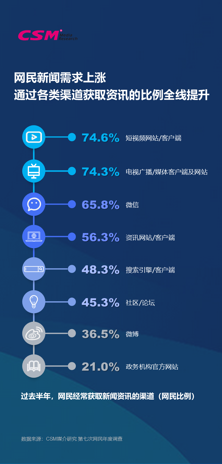 网民新闻需求上涨,通过各类渠道获取新闻资讯的比例全线提升