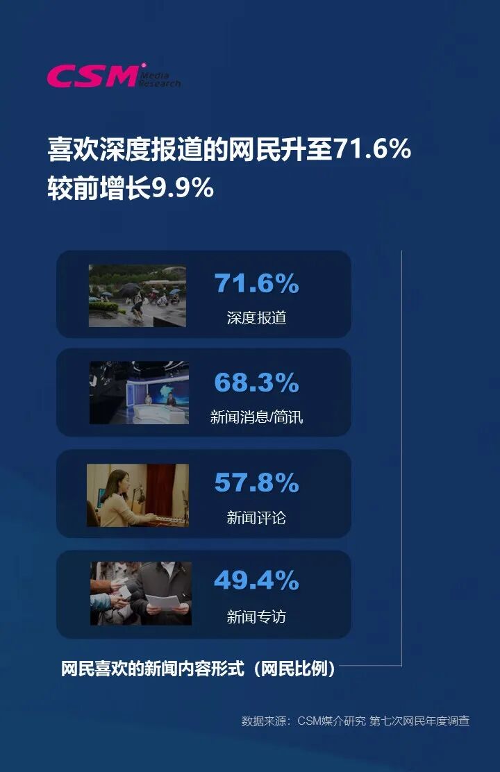 网民对新闻的深度性、专业性需求提升,愈发看重深度报道、新闻评论等“真材实料”的内容。同时,网民对新闻评论的价值标准注重基本面,强调事实准确与务实观点。