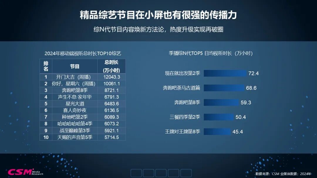 从综艺节目的小屏数据来看,精品综艺节目在小屏也具有强势传播力。综N代在小屏霸屏,也和这些节目孜孜不倦的创新和水准的保持密不可分。