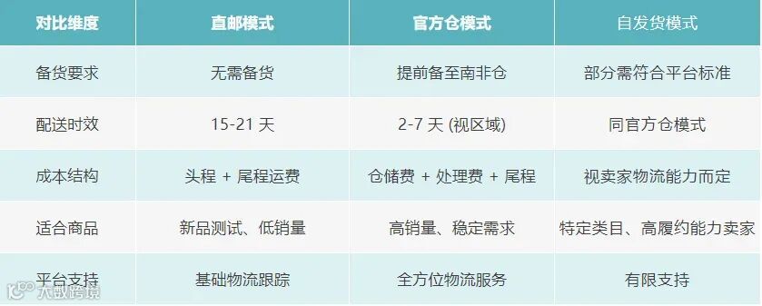 卖家需要提前备货到南非官方仓库,买家在店铺下单后,平台会自动进行分拣、打包和发货。时效:通常2-5天内送达。