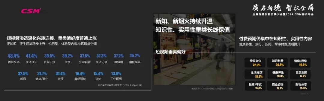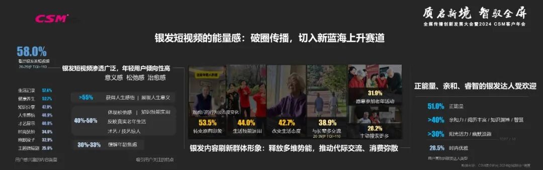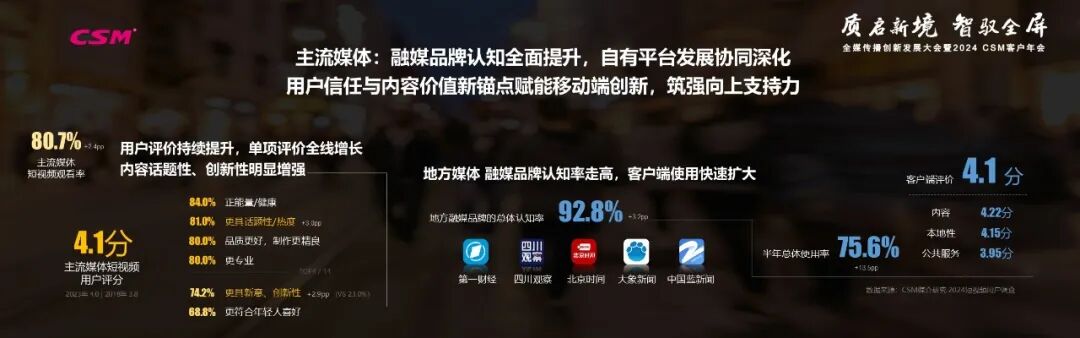 近日,由中国广视索福瑞媒介研究有限责任公司主办的「质启新境 智驭全屏」全媒传播创新发展大会暨2024CSM客户年会在贵州贵阳成功举办。CSM媒介研究融合传播研究事业部总经理张天莉在会上发布“CSM第七次短视频用户价值年度调研报告”。