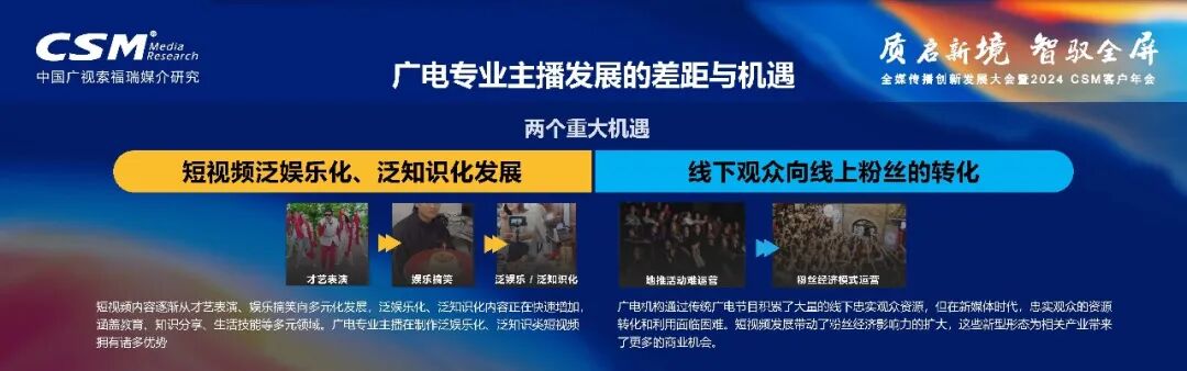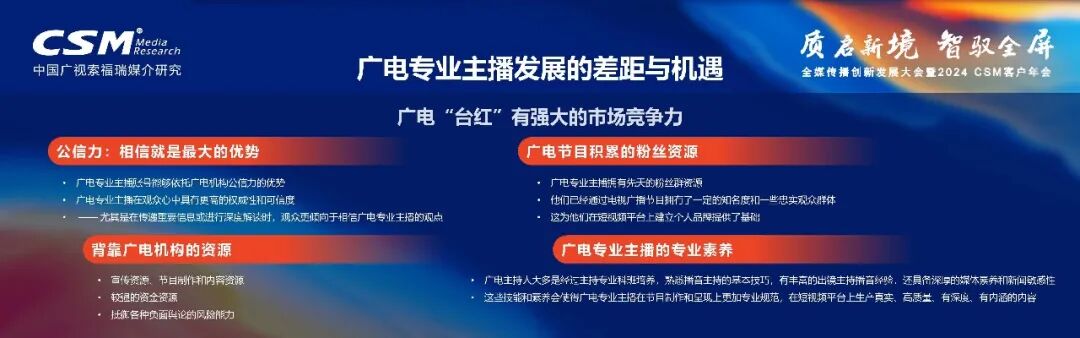 10月23日至24日,由中国广视索福瑞媒介研究有限责任公司主办的全媒传播创新发展大会暨2024CSM客户年会在贵州贵阳成功举办。中国广视索福瑞媒介研究(CSM媒介研究) 副总经理肖建兵就广电媒体融合新阶段的特点进行了深入剖析。他指出,当前广电融媒体的发展正推动着从“台红”到“网红”的转变,这也是全媒体发展的必然趋势。