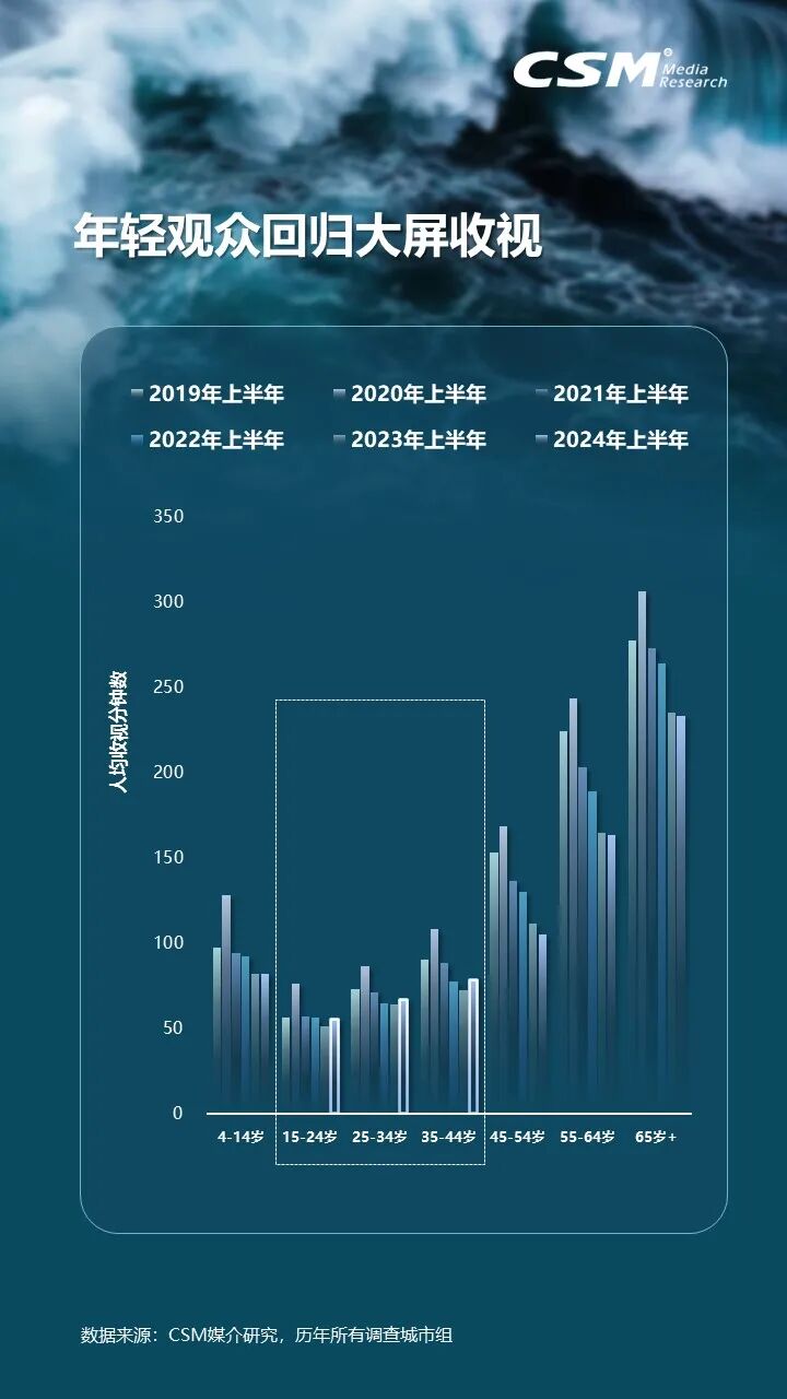 电视大屏依旧拥有庞大的观众基础,上半年国民电视大屏观众规模接近12.2亿人,电视消费总时长达到3702亿小时,同比增长5.9%。18个上星频道的“月活”用户规模超过2.5亿人,电视观众的日均观看时长也实现了止跌回升,平均每日达到4小时13分钟,其中年轻观众群体的回归尤为显著,为电视大屏注入了新的活力。
