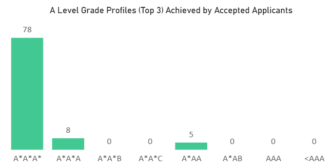 45.5% 的录取学生在 A-level 考试中取得了3个 A* 或更高的成绩。