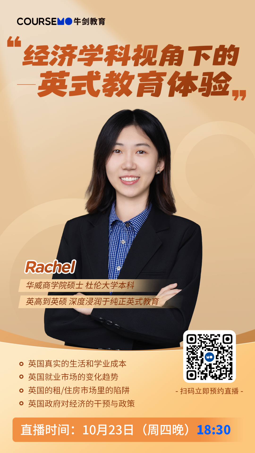 今晚18:30,我们邀请了COURSEMO的经济老师Rachel,直播分享经济学科视角下的英式教育体验。