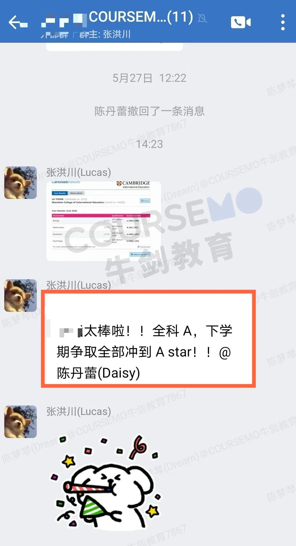 COURSEMO学员A*/A刷屏报喜!!