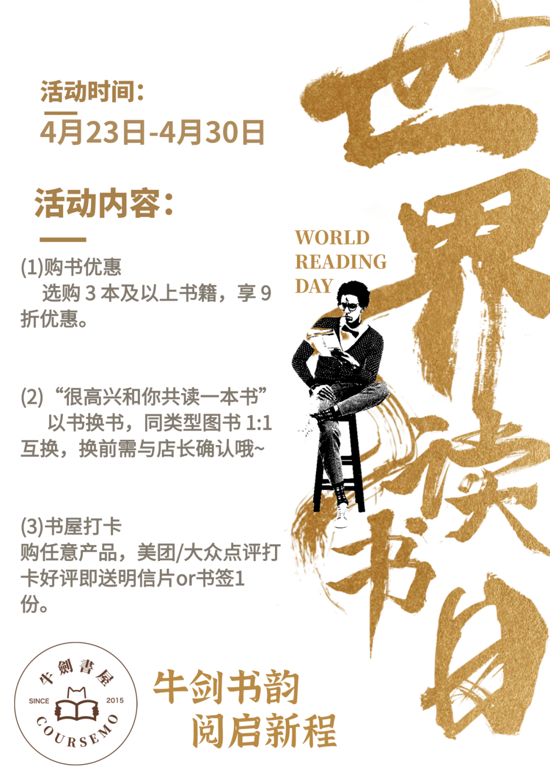 昨日为世界读书日,牛剑书屋也给大家带来了特别福利活动。不仅有特别购书折扣,亦有“以书换书”活动,欢迎爱书之人在书屋交换你的心爱之书,让看过的书流动起来,开启与书相关的缘分。