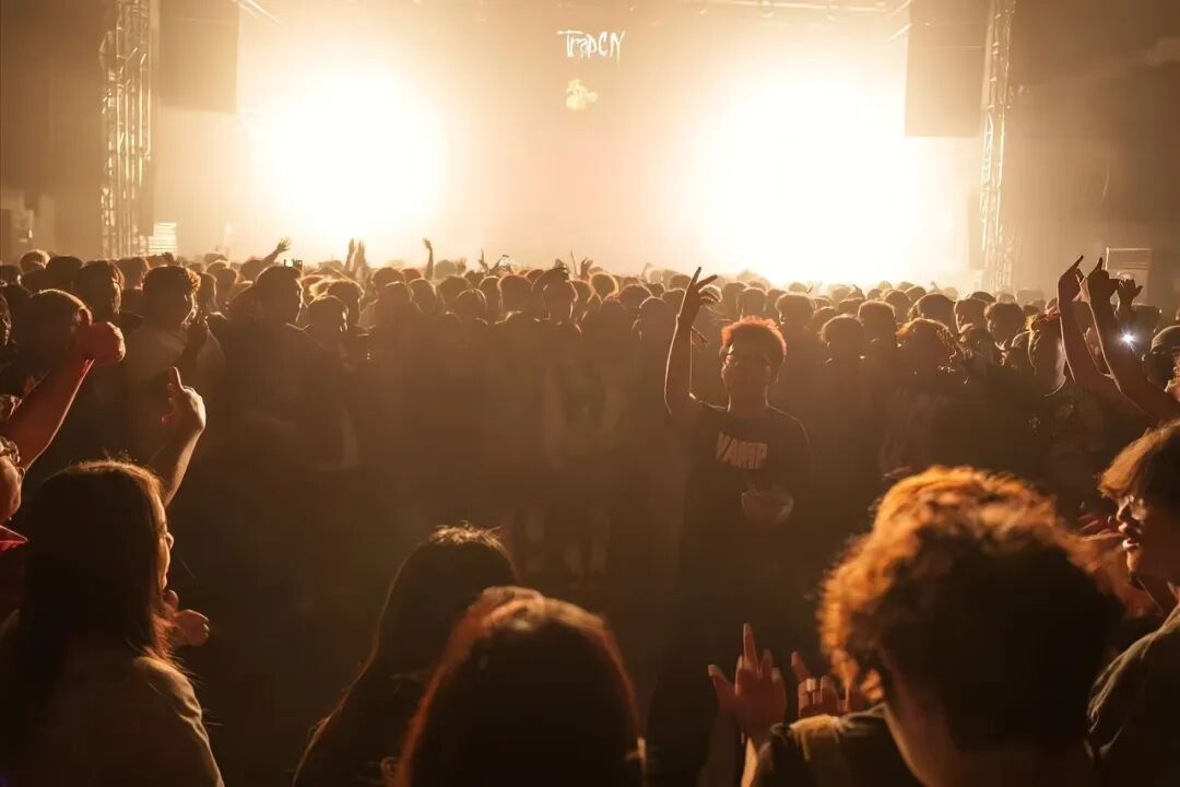 △在trap cn(嘻哈文化交流平台)的演出现场,图中央为邱同学