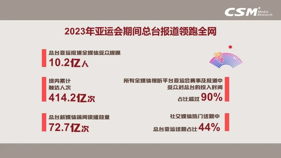 未来,CSM基于经验沉淀和创新积累,将通过全媒体视听数据服务矩阵,持续助力行业在多形态、立体化、多层级的跨媒体传播中更进一步。