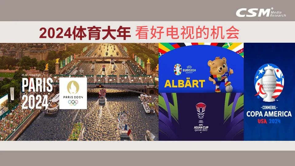 杭州亚运会再创高收视表明体育赛事越来越成为大屏吸引受众关注的核心IP,2024是体育大年,将推动受众迎来看好电视的重要机会。