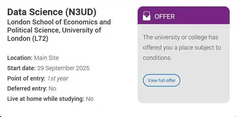 但其实我当时也不觉得自己可以申上LSE,因为比我成绩更好的同学被拒了,我就想那我大概也被拒了,但没想到后来收到了offer。