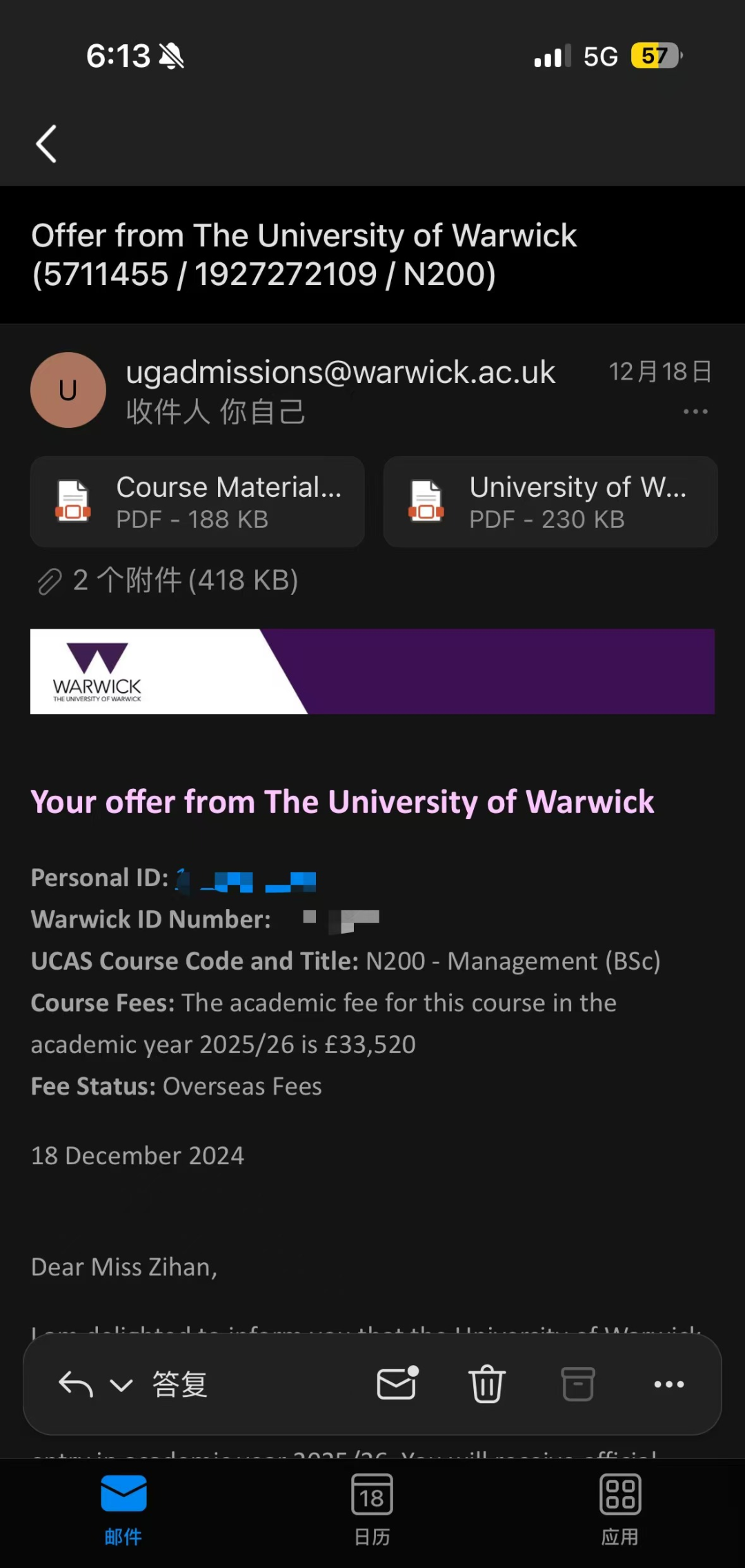 △华威商学院的offer