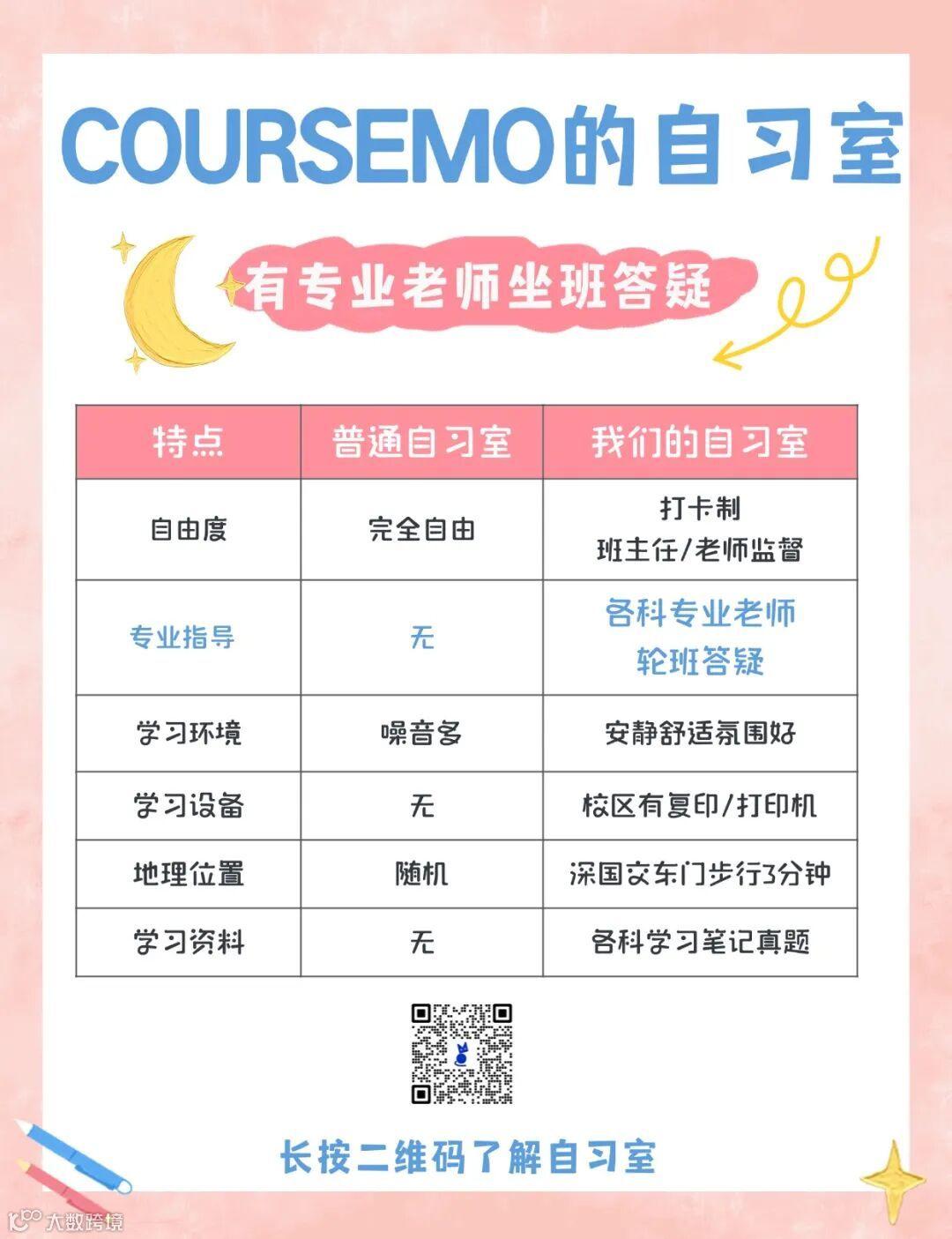 想加入我们自习室的同学,可扫码咨询小助手(vx:coursemoedu)了解价格详情!