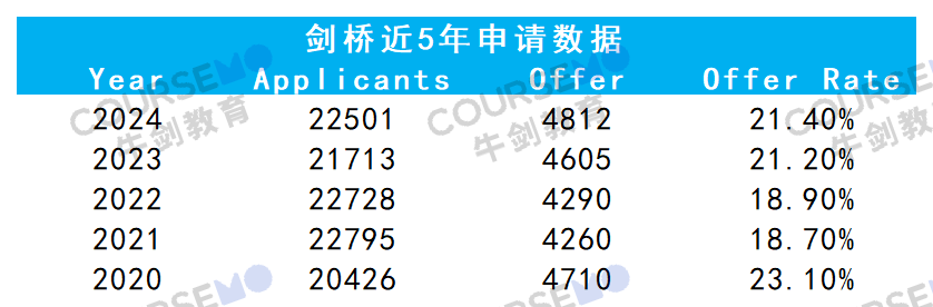 剑桥近期公布了2024cycle申请数据,即24fall的同学的申请及拿offer的情况。同时还可查询近5年的整体申请数据,以方便大家分析剑桥近几年的申请变化。