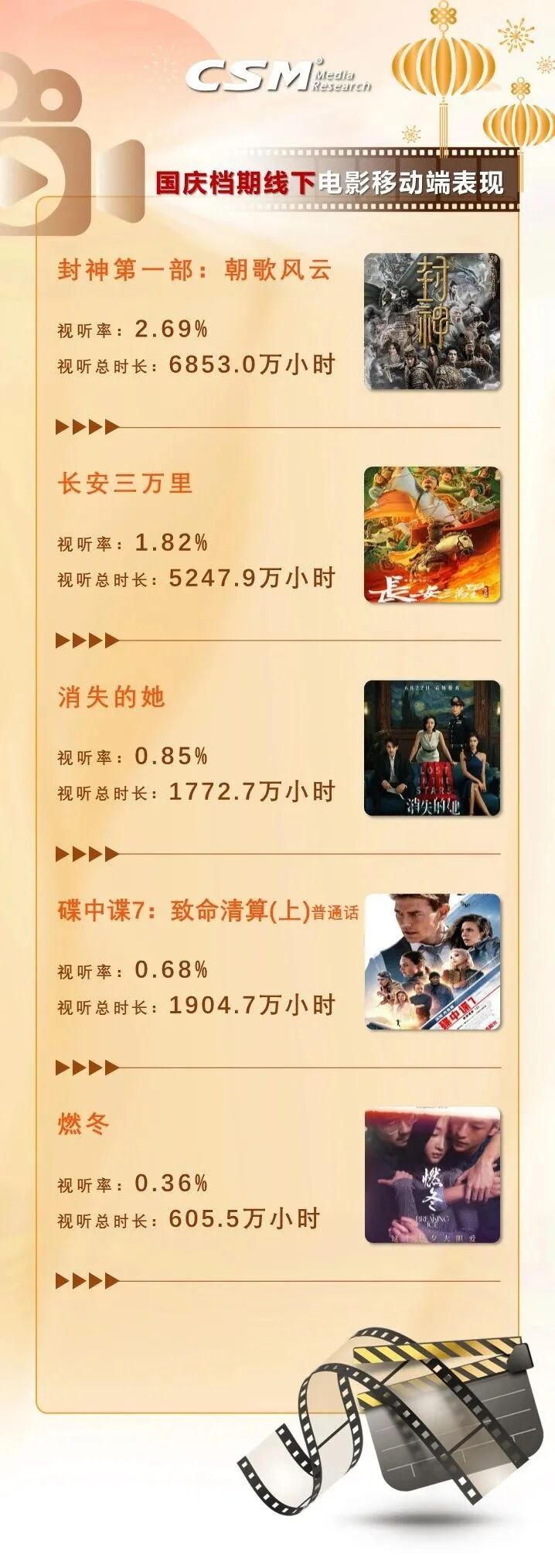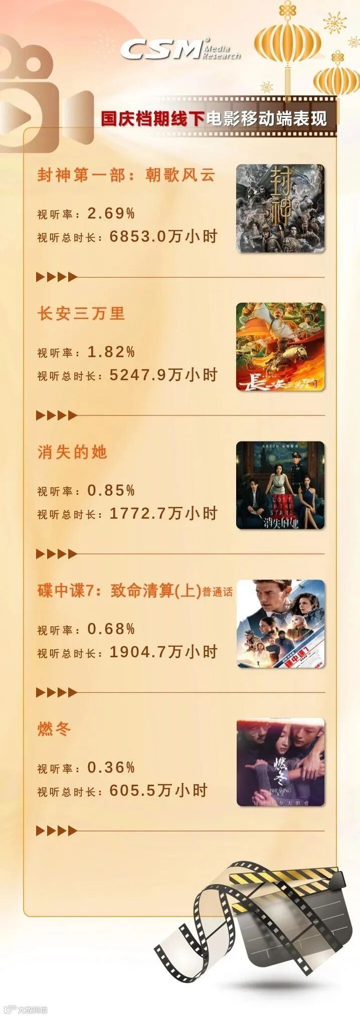 2023年国庆期间,几部院线热播电影集中上线,我们也首次对这些内容的移动端视听情况进行了了解。