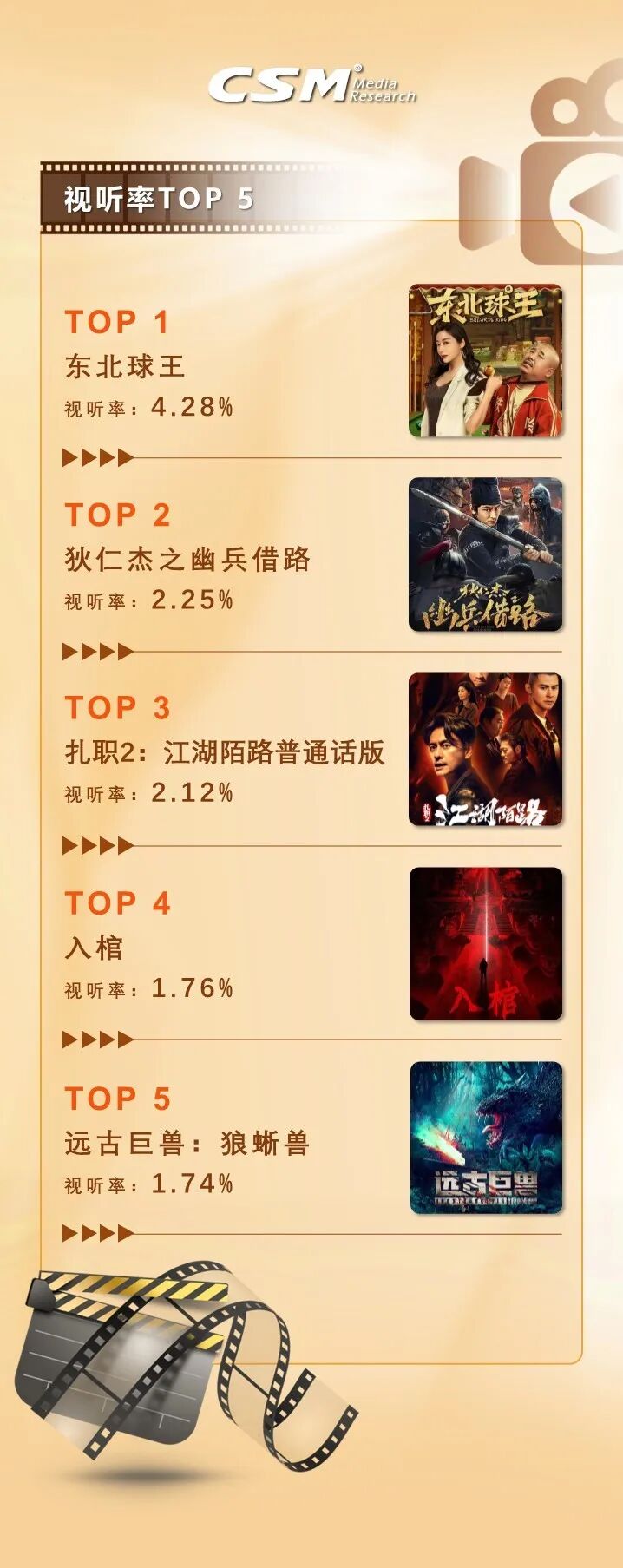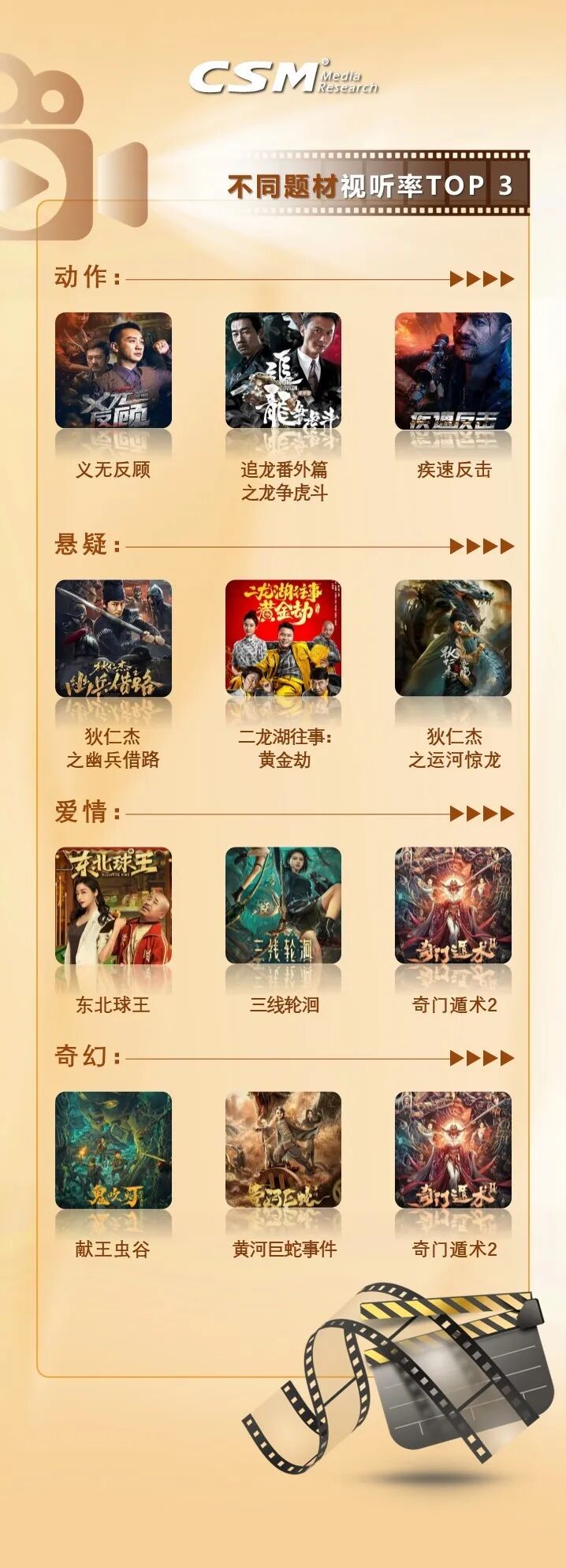 当年网络电影的移动端视听总时长接近22亿小时。换算为视听率后,单部电影最高视听率达到4.28%,此外还有32部电影的视听率在1%以上。