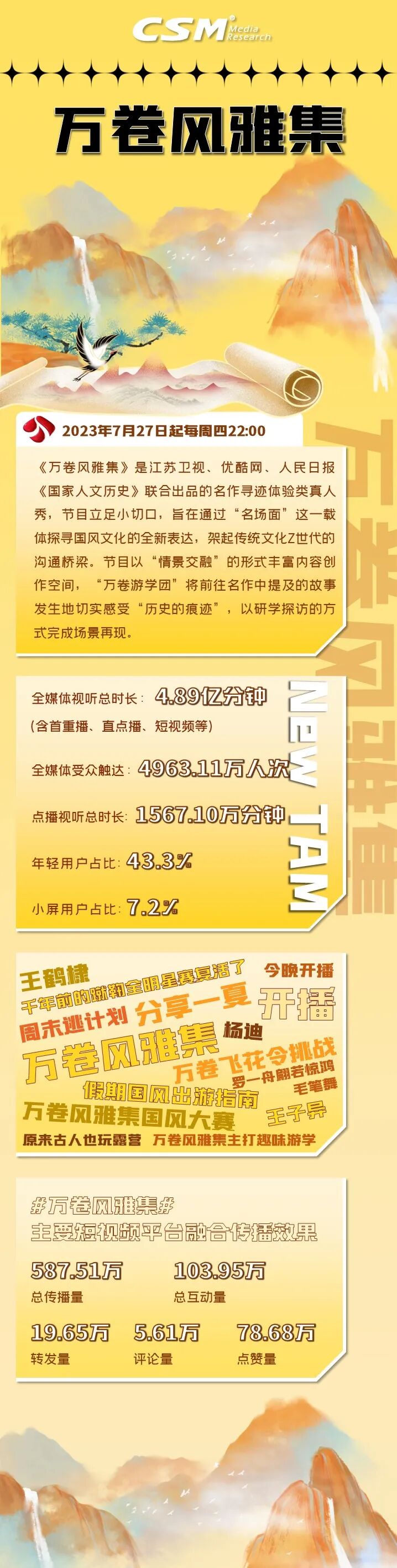 中国广视索福瑞媒介研究(简称CSM)持续全方位监测媒介传播动态趋势,量化传播研究与分析,并利用全媒体视听同源数据(NewTAM)实现了具体到“人”的全媒体、跨平台、多场景的同源测量,打通数据孤岛,破除研究壁垒,真实还原了市场总体概貌,不定期为大家带来全媒体视角中的各类型节目传播新业态。