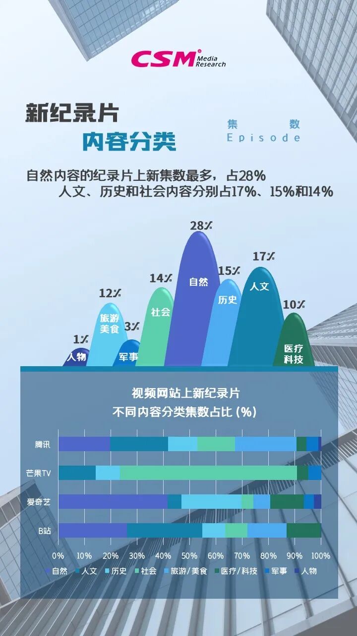 纵观2023年第三季度的纪录片赛道,四大网络平台上新纪录片内容超过800小时,共计1600集,其中九成以上为系列纪录片。从产地看,国产上新纪录片占比超六成,而在进口纪录片中,爱奇艺上新内容相对较多。从内容分类看,自然、人文类纪录片稳坐前两名宝座,历史类和社会类分列第三位和第四位。更多详细信息请参阅以下内容。