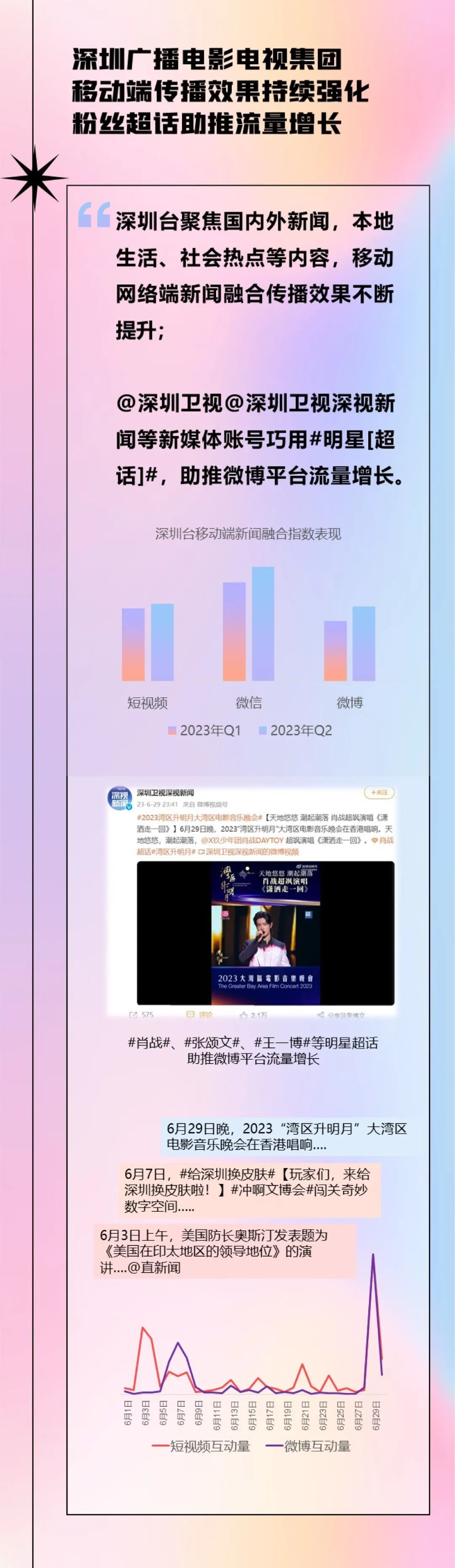 杭州、武汉等台头部账号关注本地民生,多方位宣传城市形象,吸引年轻人的关注。深圳、东莞等台则善于利用特别活动打造热点话题,通过粉丝超话助推流量增长。