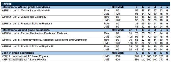 但数据再往前,与2023年1月相比,就出现了数据波动,比如物理,以U1为例,从去年和今年的分数线来看,2024年1月AS物理的A线在53分,与2023年10月、6月的分数线一致,无变化,但相比2023年1月的分数线上涨10分。其他学科也有类似情况。