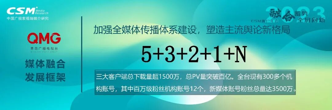 2023年6月20日-21日,由中国广视索福瑞媒介研究有限责任公司(以下简称CSM)主办的「融合蓄势 · 全屏向新」2023CSM客户年会在青海西宁成功举办。青岛广播电视台总编室副主任刘宏宇介绍了青岛广电创建的媒体融合数据评估体系,为媒体融合探索提供了有力的支撑和参考,并给整个行业提供了重要的经验。