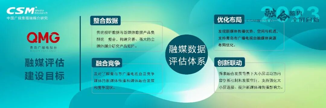 近两年,青岛广播电视台在媒体融合实践方面取得了一定的成果,因而我们也需要形成一套全新的媒体评估方案。于是,在CSM媒介研究的协助下,我们搭建完成了这套融媒数据评估体系。这套评估体系的建设目标主要包括以下4个方面: