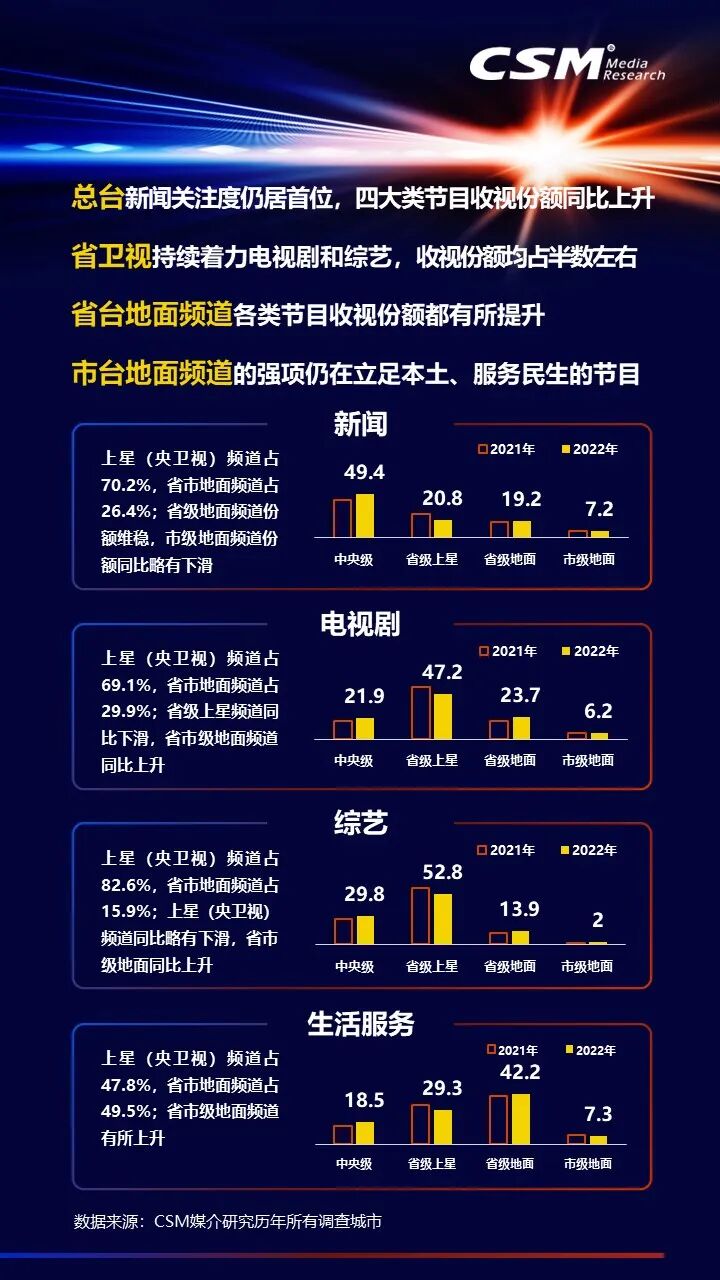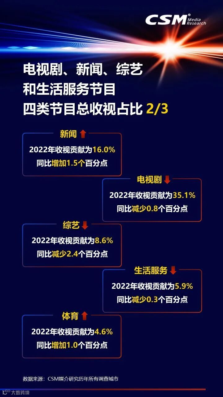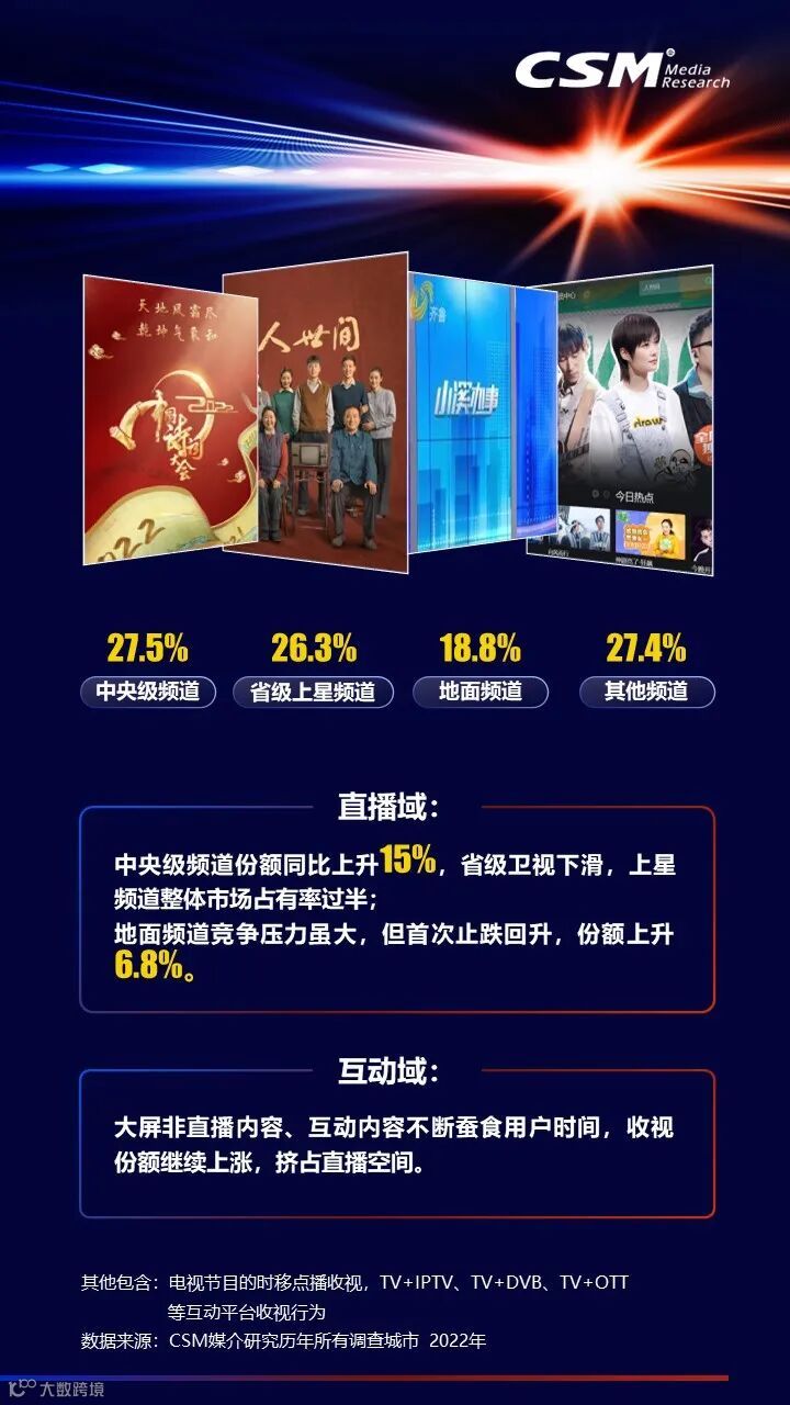 收视中国2022年,传媒行业在“降本增效”中拓展求变,媒体融合纵深推进,加速进阶。在全媒体环境下,电视大屏的内容呈现矩阵化态势,并向传播融媒化,多平台联动化发展,节目持续精品化进阶,构建多样态模式。
