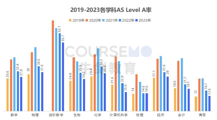 2019-2023各学科AS Level A占比