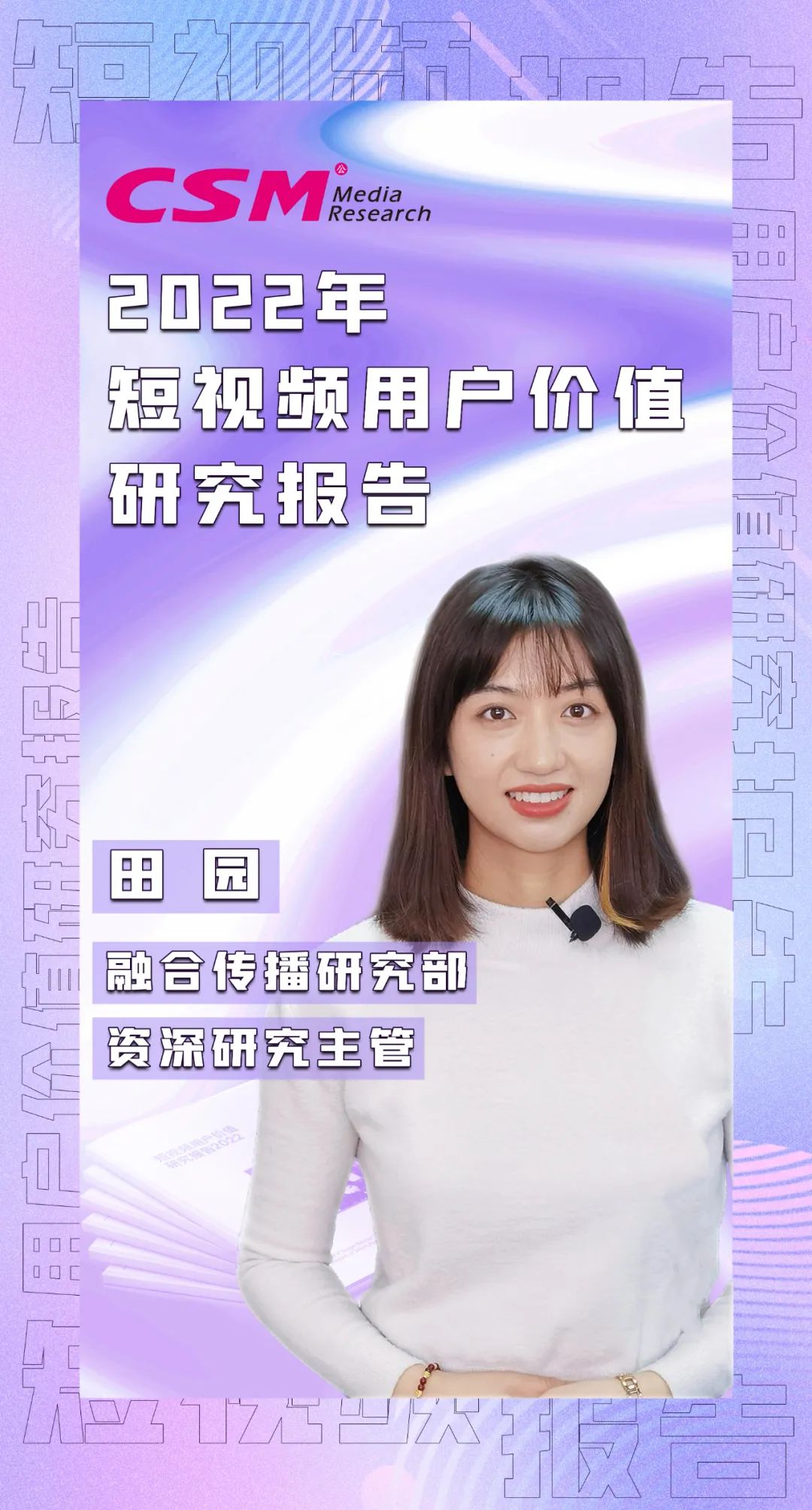 为了对报告进行更好的分享,CSM融合传播研究部团队录制了视频,分期分话题对《短视频用户价值研究报告2022》中的主要特点与趋势进行更为全面的解读。