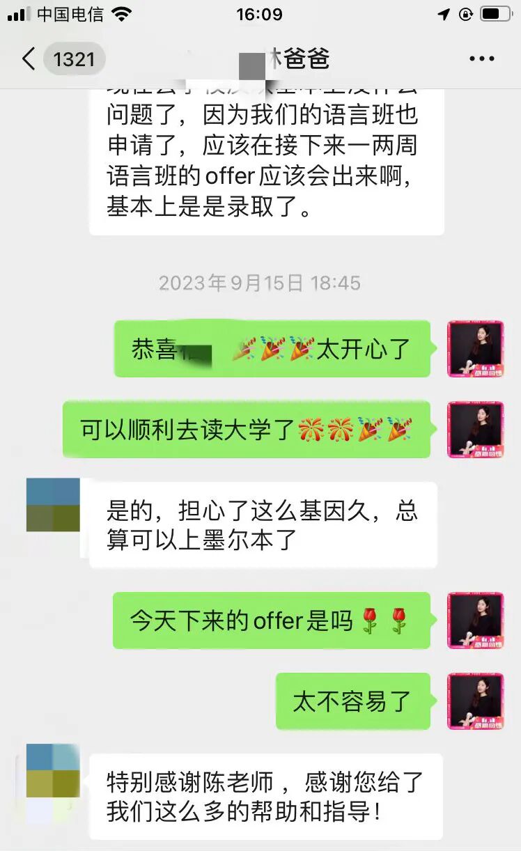 对我个人来说,得到这样的信任,是对我的认可。看到孩子们达到自己的目标成绩,拿到梦校的offer,对我真的是极大的肯定。