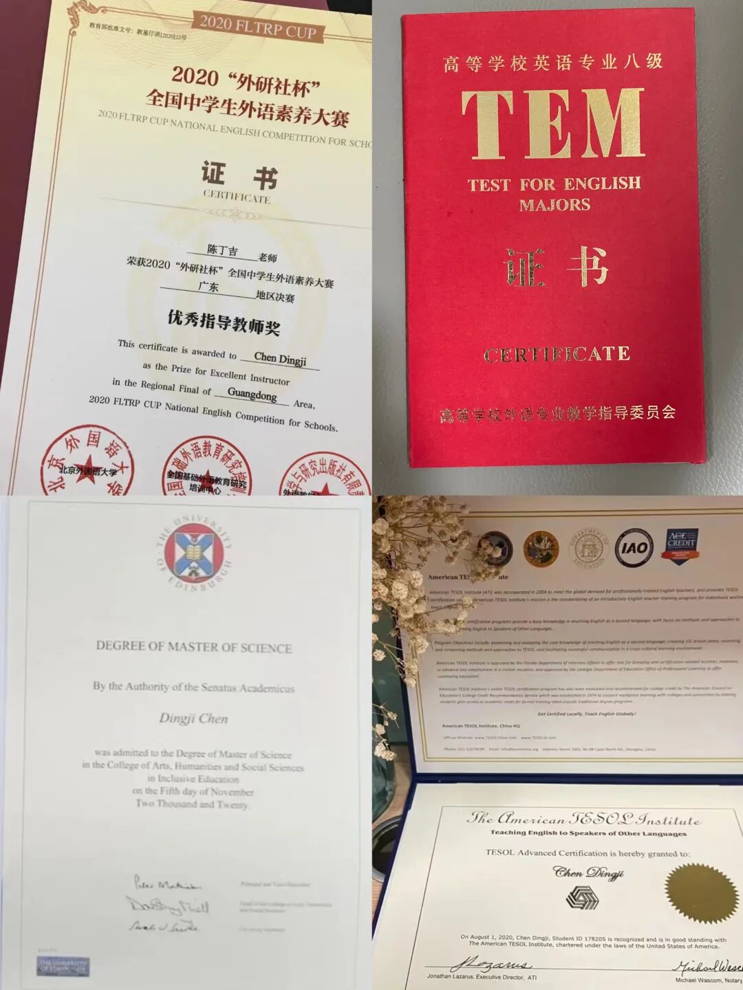 Diane的本科所学为英语,在毕业后,她通过持续学习拿到系列证书,其中包含TESOL(国际英语教师资格证)。