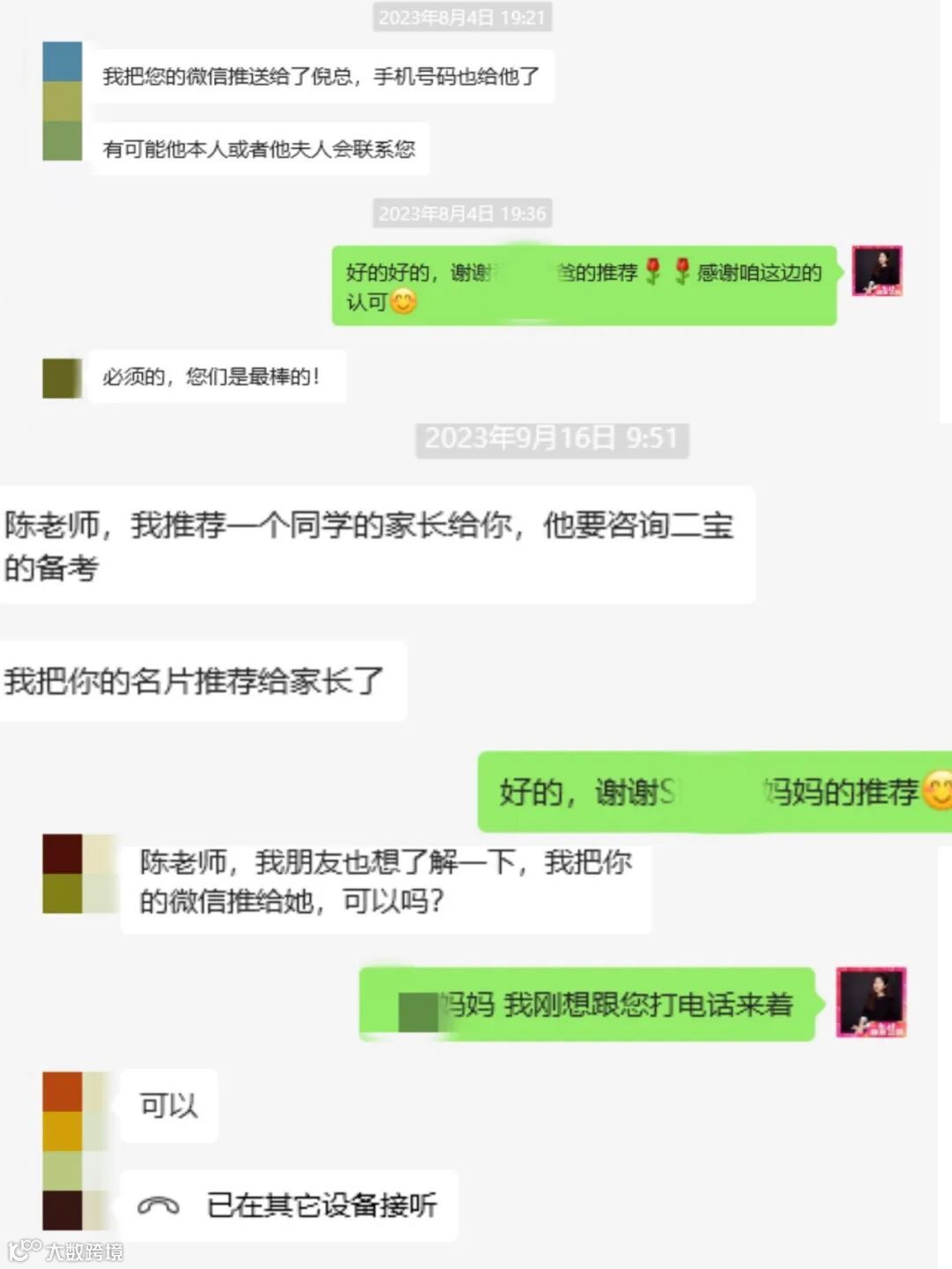 另一点是我本身研究生是学教育的,足够专业,这些都能让家长更信任我。
