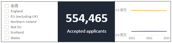2022-2023年总录取554465 人,低于 2022 年的 563175 人(-1.5%),但较 2019 年的 541240 人有所增加(+2.4%)。