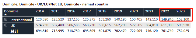 国际生的申请数据有所上升,今年为152100人,相比去年增加了2260人,但录取率下降了2%左右,比2019年更是低了近7%。