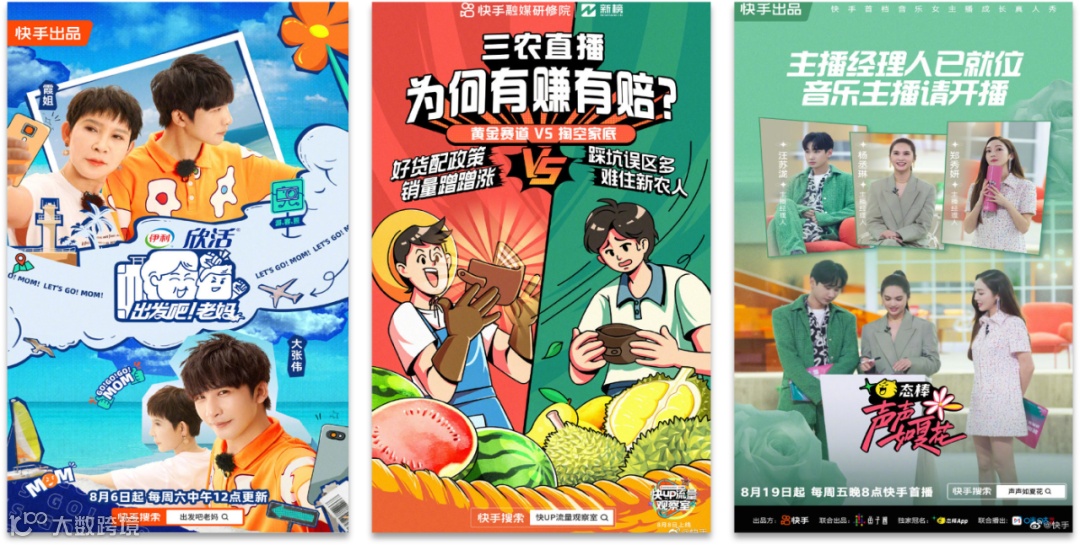 2022年七夕之际,快手上线了中老年相亲综艺《老铁情缘》,该节目同步在黑龙江电视台播出。8月份又相继上线三档综艺: