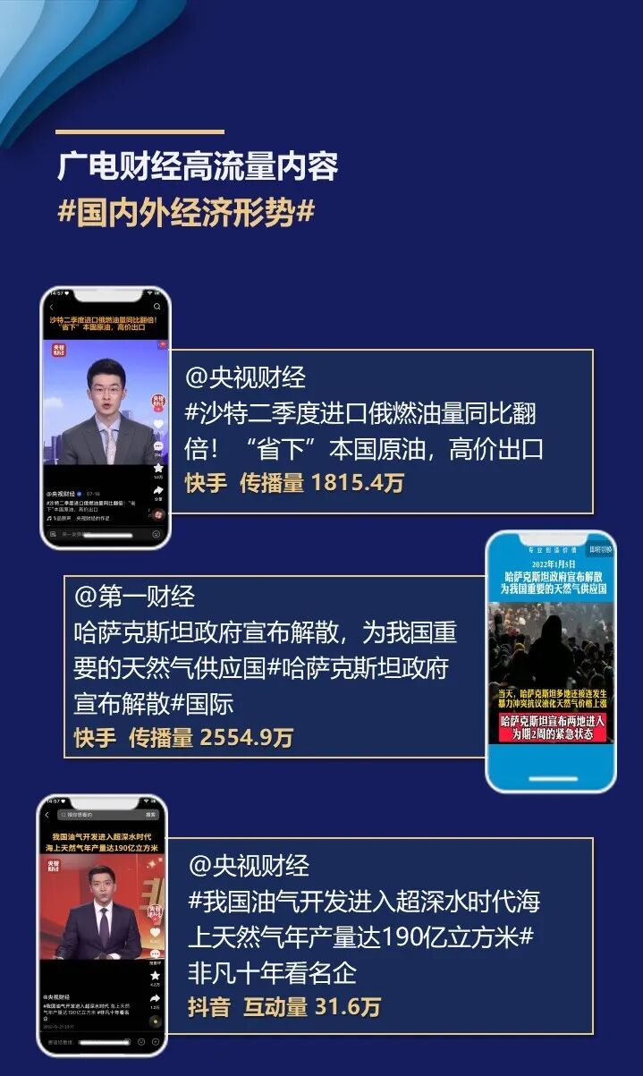 从#国内外经济形势#看,高流量内容主要以国家经济政策、国际财经形势等为主,涉及如财税政策、国际汇率、市场经济、能源问题等。如上海台@第一财经在今年1月5日在快手平台发布有关宏观经济的《哈萨克斯坦政府宣布解散,为我国重要的天然气供应国#哈萨克斯坦政府宣布解散#国际》内容以图片配合文字报道的方式,报道了我国重要天然气供应国哈萨克斯坦政府解散的相关资讯,并在政府解散当日哈萨克斯坦多地还引发由液化天然气上涨发生的暴力抗议。评论区猜测此次措施可能导致国内煤气、天然气上涨,网友纷纷称“买俄罗斯的”“去年煤气60一瓶,现在135了”。